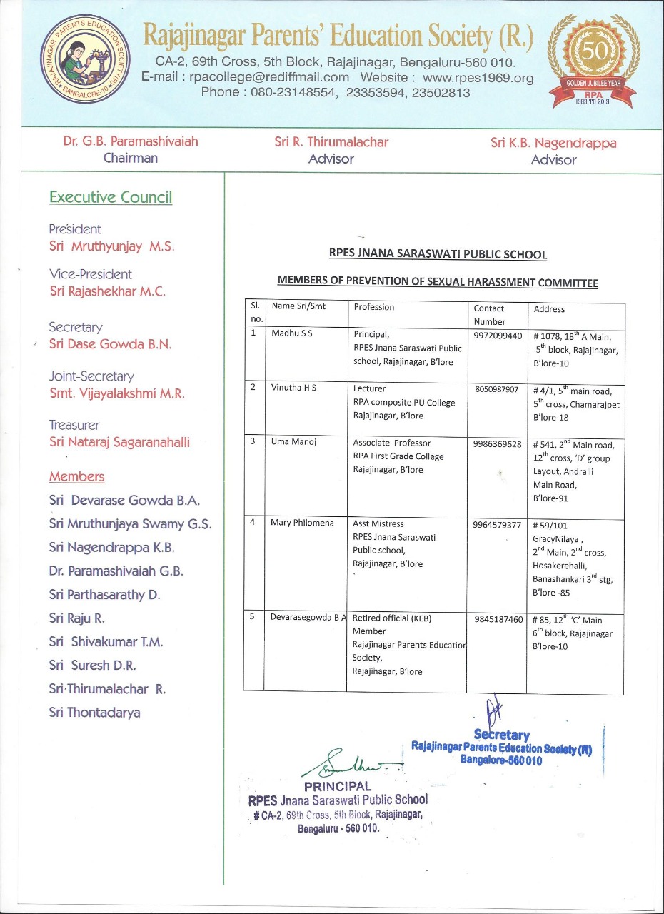 • Sexual Harassment Committee for female employees/girls (students) is formed in the school    -    PDF enclosed